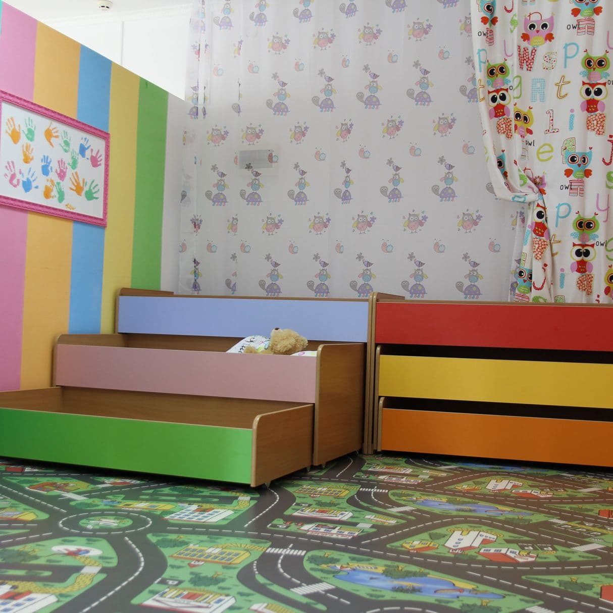 Отдельно стоящее здание, просторные группы 100 кв.м., собственная площадка для прогулок, современные игрушки и учебные пособия, видеонаблюдение онлайн.